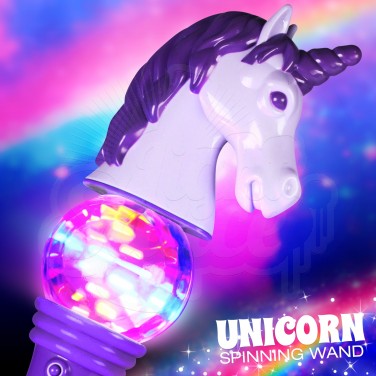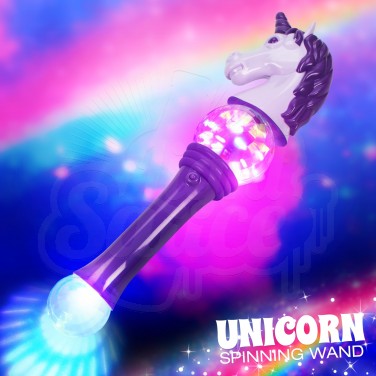 An enchanting wand with double the effects, this super sized unicorn spinner is quite simply captivating! A large LED spinner ball sits centrally in this huge wand creating multi coloured circles of light whilst a disco ball sits at the base projecting colourful light for the ultimate wow factor! Finished with a striking unicorn’s head, this impressive wand is not only big on size, but is massive on effects! Perfect for parties and events, the flashing unicorn spinner is guaranteed to be a crowd pleaser!