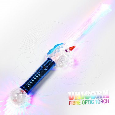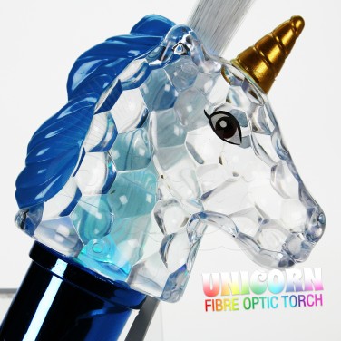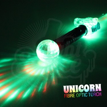 Multi faceted clear unicorn head is topped with colour change fibre optics to make a magical wand! Lit by colour change LEDs with six cool modes, this enchanting fibre optic torch has a brightly coloured metallic handle that’s finished with a kaleidoscopic disco ball for double the fun!